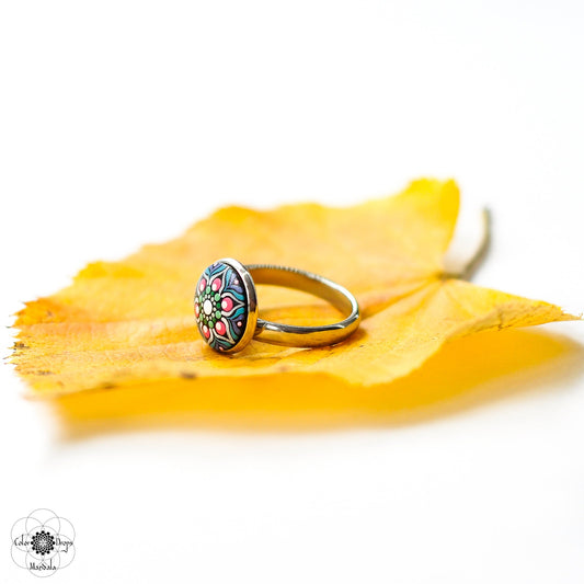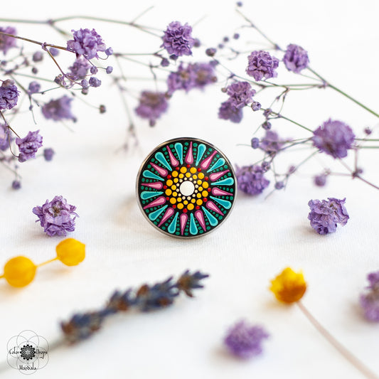 Inel Mandala "Flower power" - Turcoaz & Roz