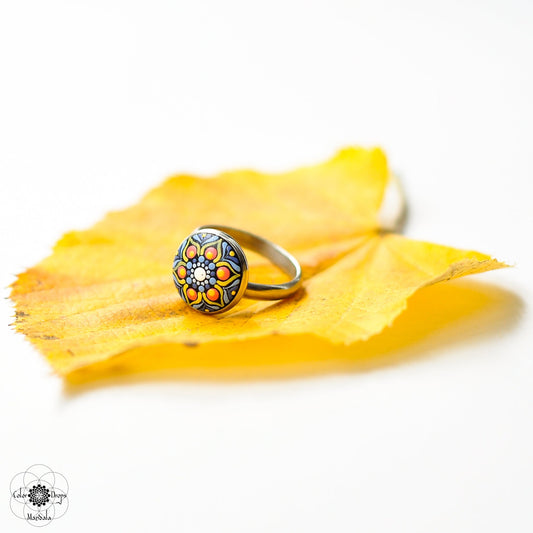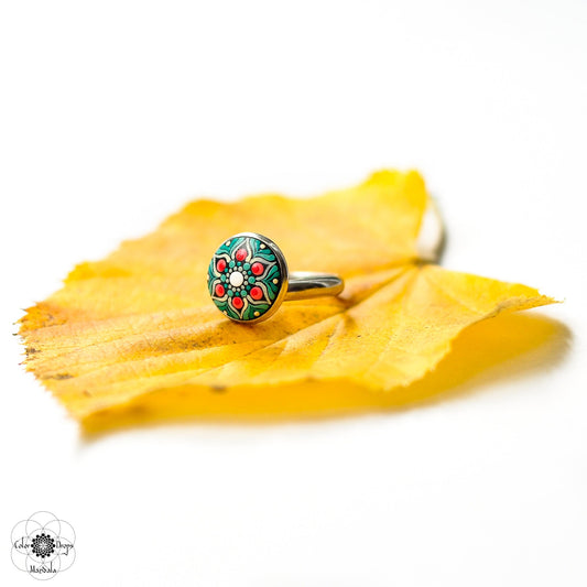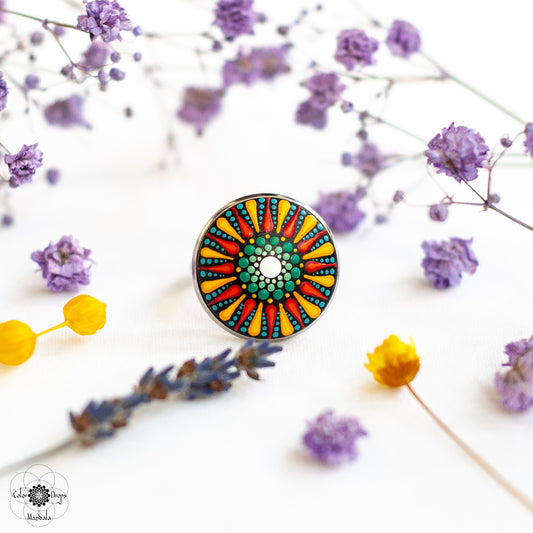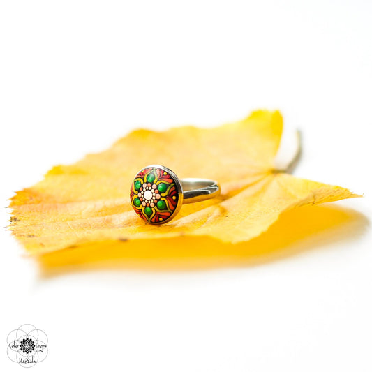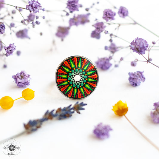 Inel Mandala "Flower power" - Portocaliu & Verde