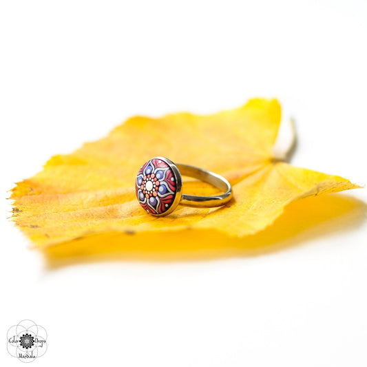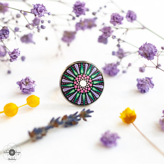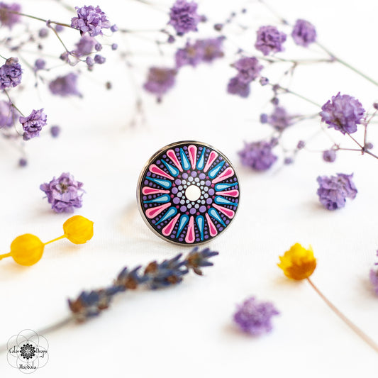 Inel Mandala "Flower power" - Mov & Turcoaz