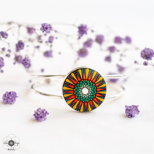 Brățară Mandala "Flower power" - Portocaliu & Verde