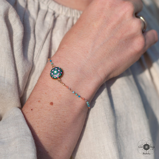 Brățară Mandala "Flower power" - Turcoaz & Roz