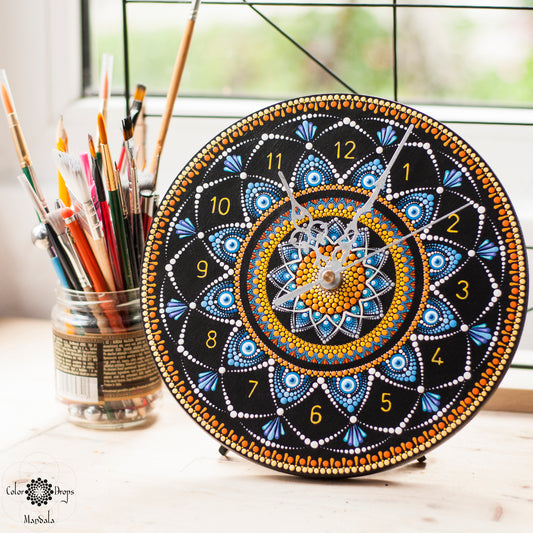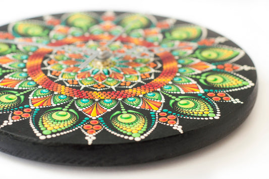 Ceas de perete din lemn, pictat manual, diametru 22 cm
