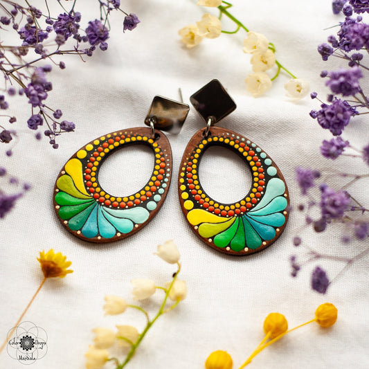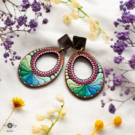Cercei mandala "Harmony Dance" - Verde & Turcoaz