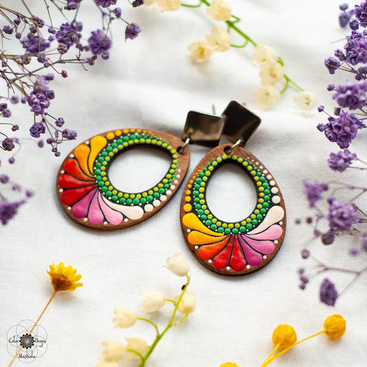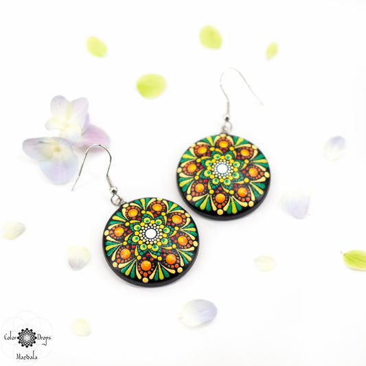 Cercei mandala "Harmony Dance" - Galben & Roșu