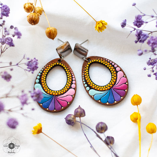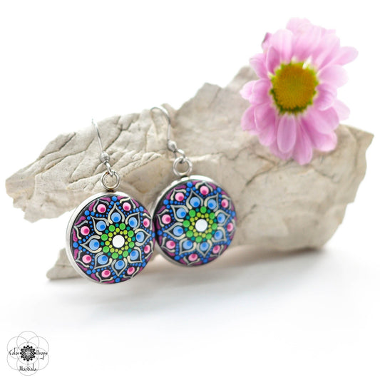 Cercei mandala "Harmony Dance" - Albastru & Roz