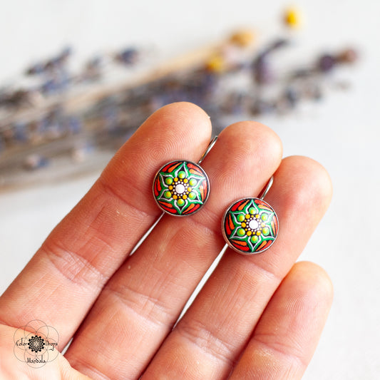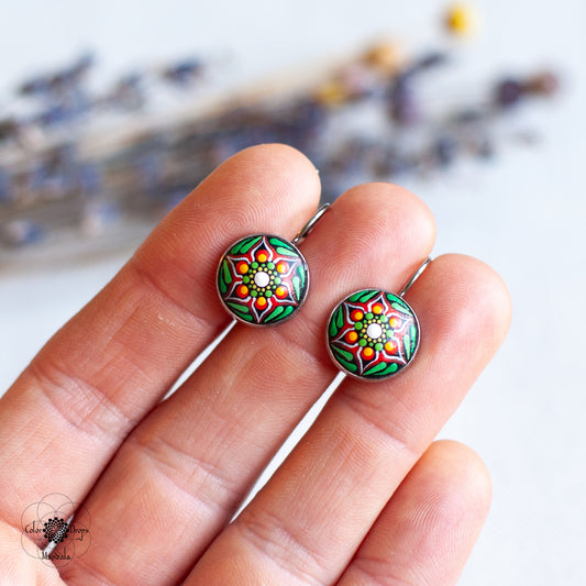 Cercei Mandala "Vivid Nomad" - Verde & Roșu