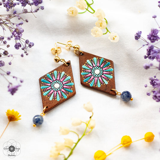 Cercei mandala "Harmony Dance" - Albastru & Roz
