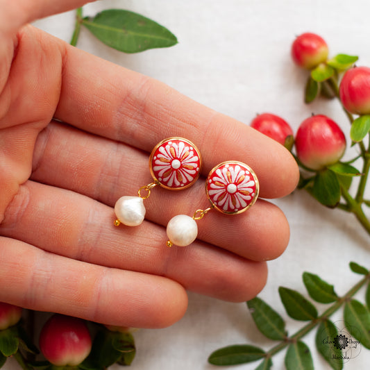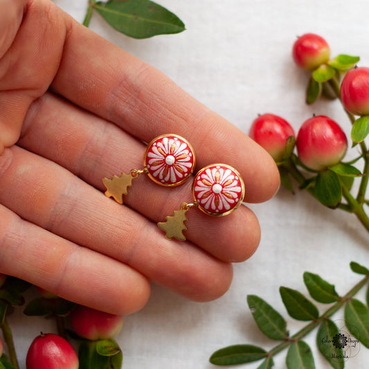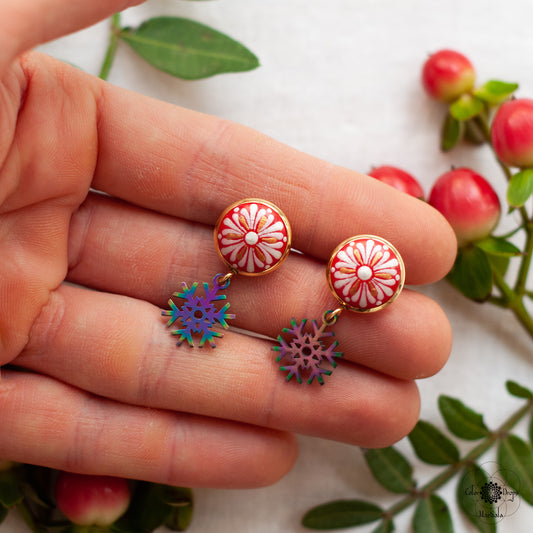 Cercei Mandala "Fulg de nea" MINI - Roșii