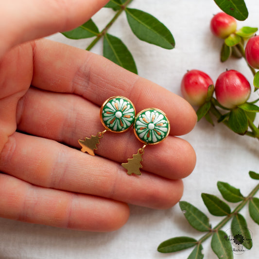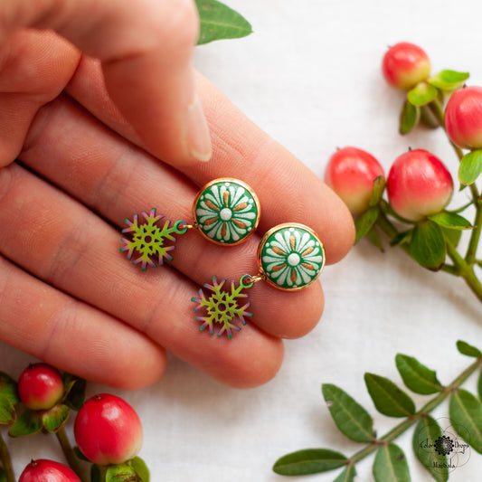 Cercei Mandala "Fulg de nea" MINI - Verzi