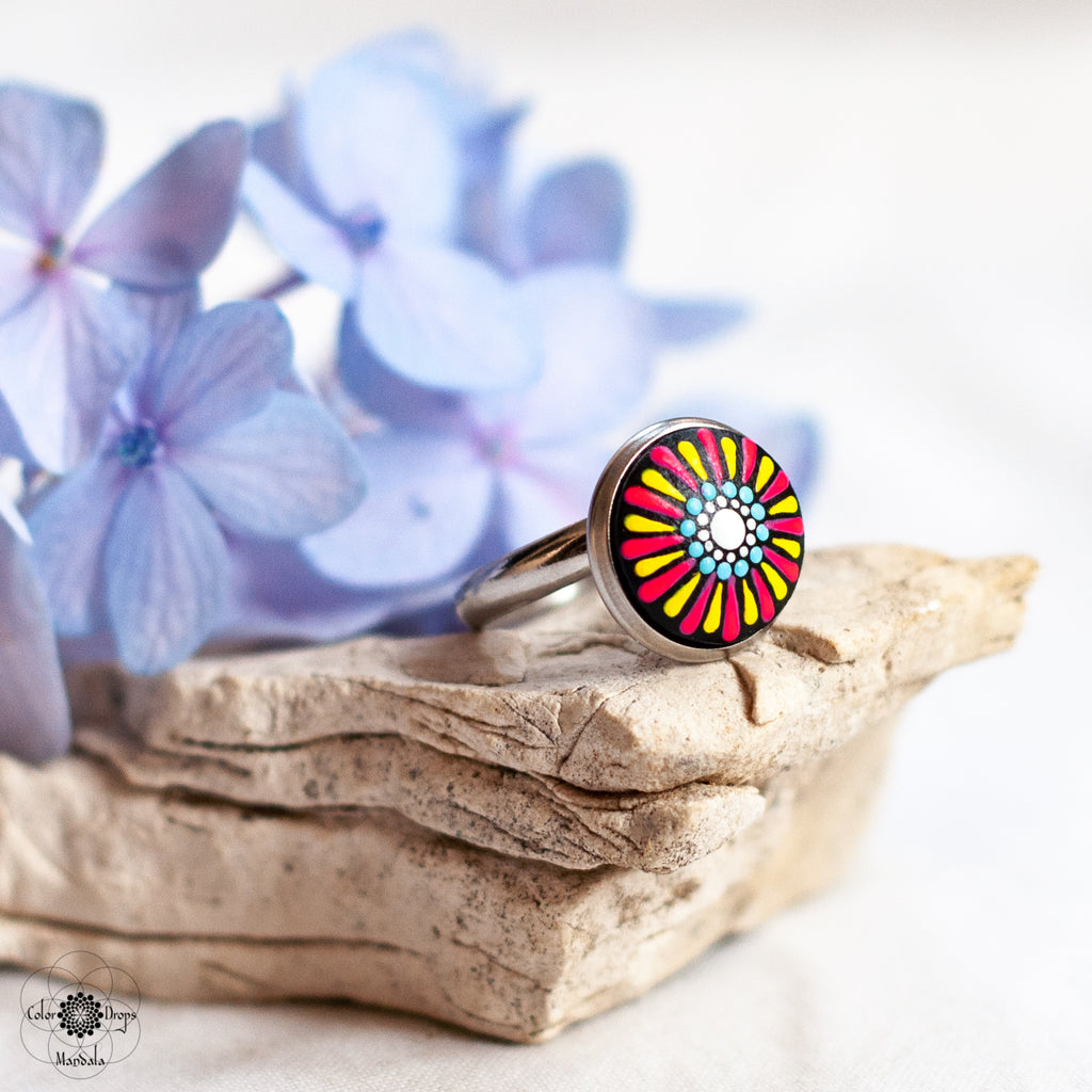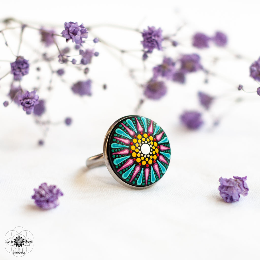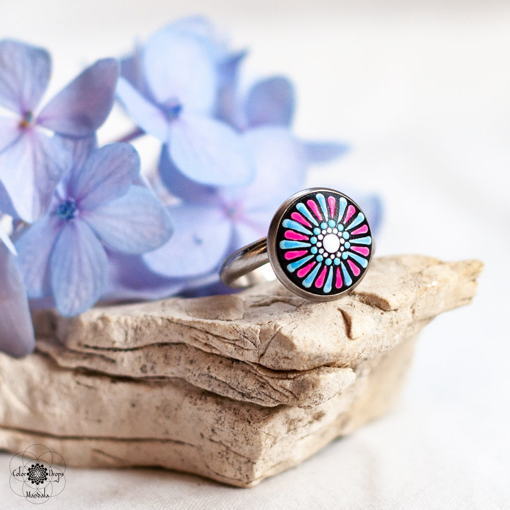 Inel Mandala "Flower power" - Turcoaz & Roz