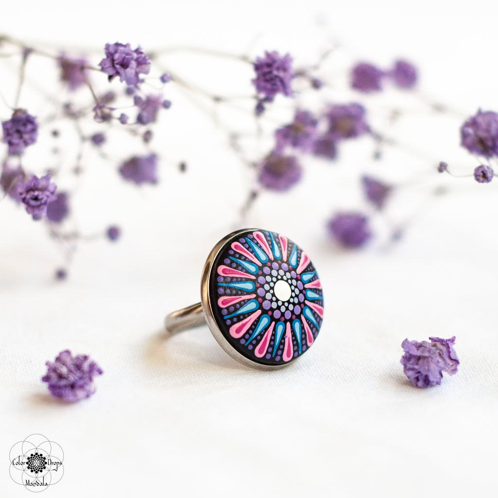 Inel Mandala "Flower power" - Mov & Turcoaz