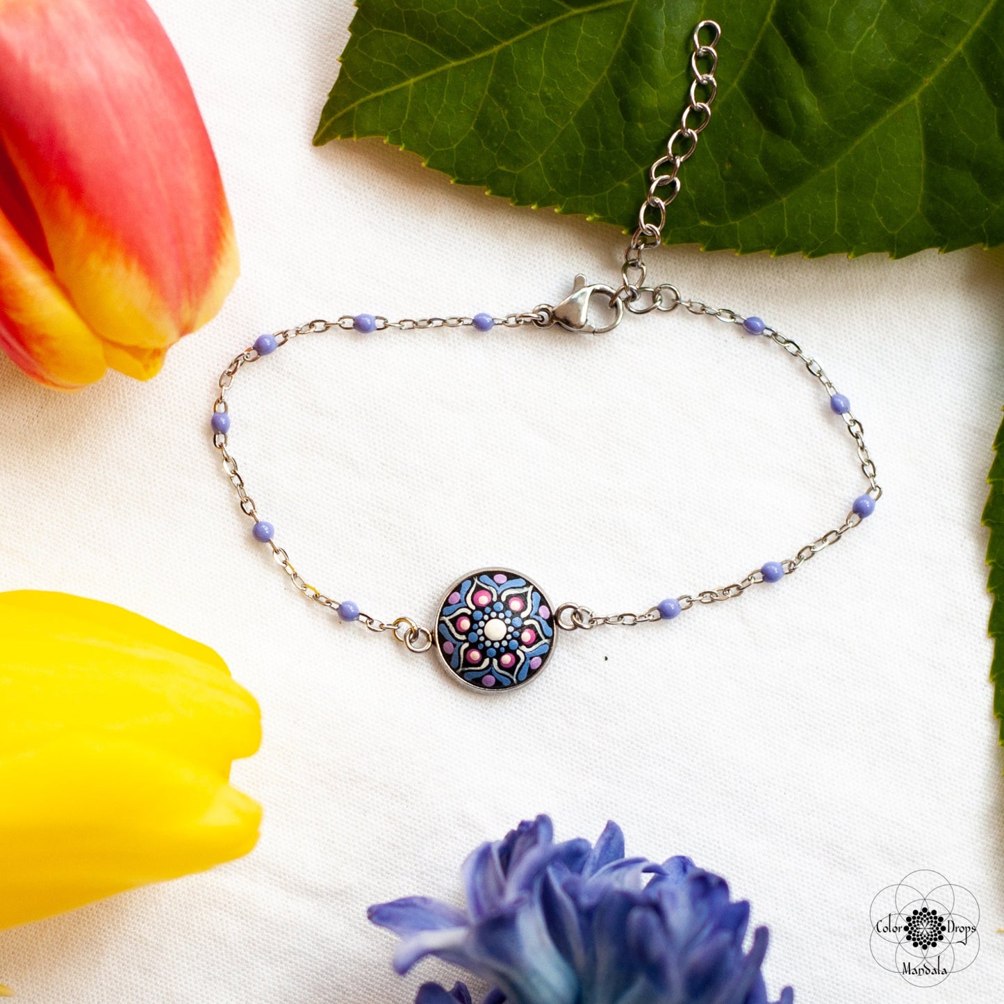 Brățara Mini este o bijuterie discretă dar jucăușă, fiind pictată în culori vesele de primăvară. Dacă vrei să adaugi o pată subtilă de eleganță și culoare ținutei tale, atunci brățara Mini este pentru tine!