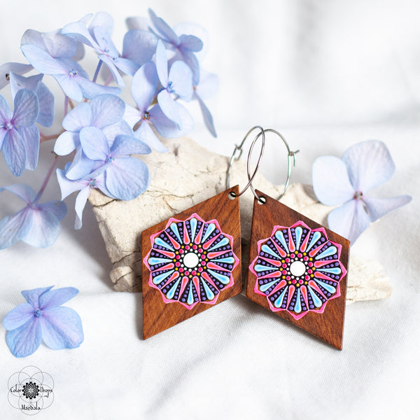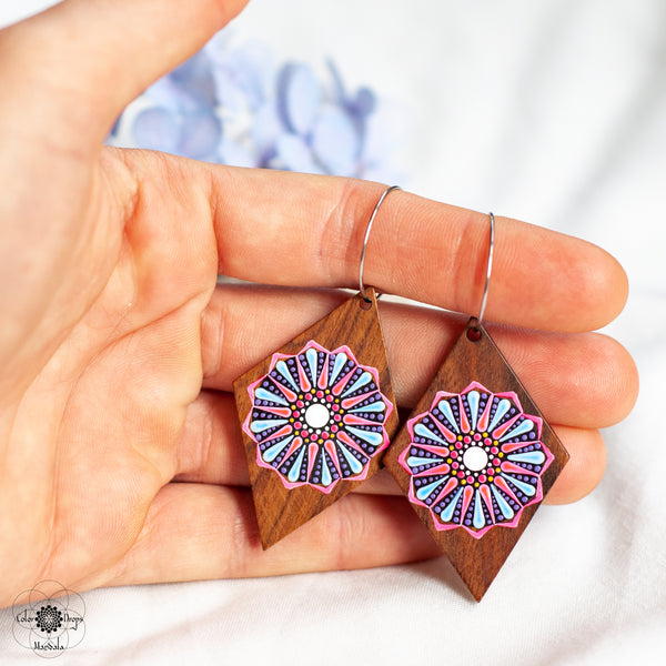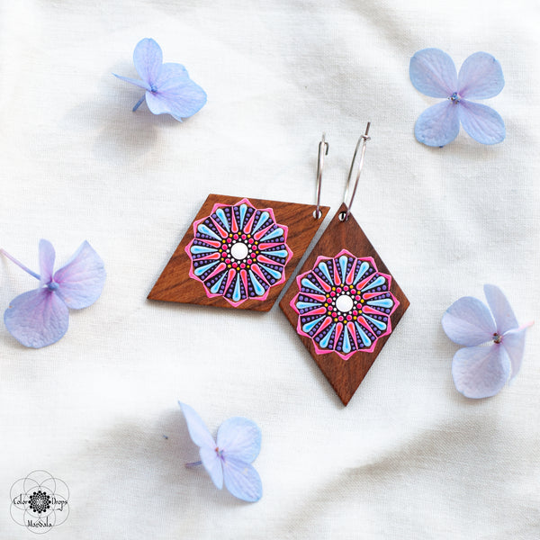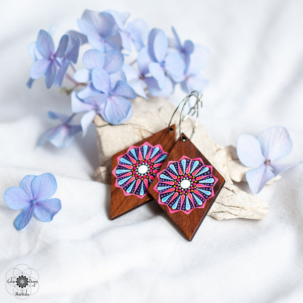Cercei mandala "Neon Glow" - Albastru & Roz