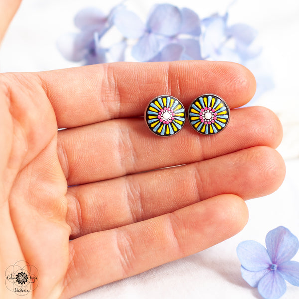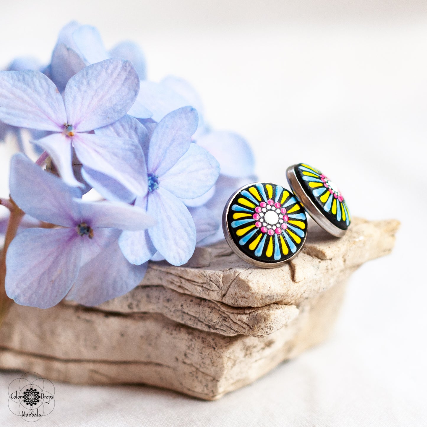 Cercei Mandala "Neon magic" - Albastru & Galben