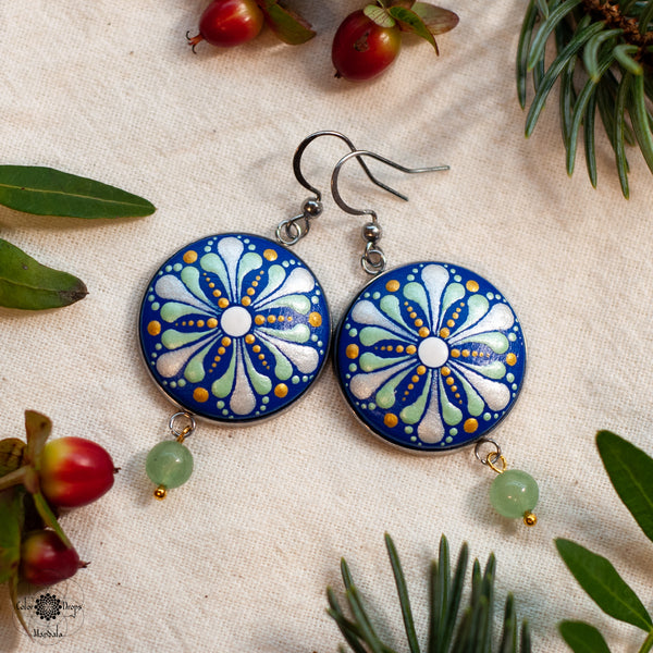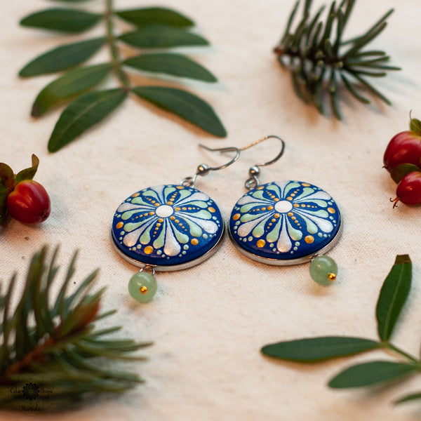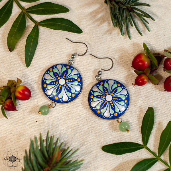 Pictați manual pe lemn, cerceii mandala sunt foarte ușori și confortabili. Culorile au fost atent alese pentru a obține un efect cromatic deosebit, ce te va ajuta să îți păstrezi pozitivitatea și energia pe parcursul întregii zile. Fiecare punct a fost pictat cu multă grijă și cu migală, ca tu să te simți unică și specială purtându-i.
