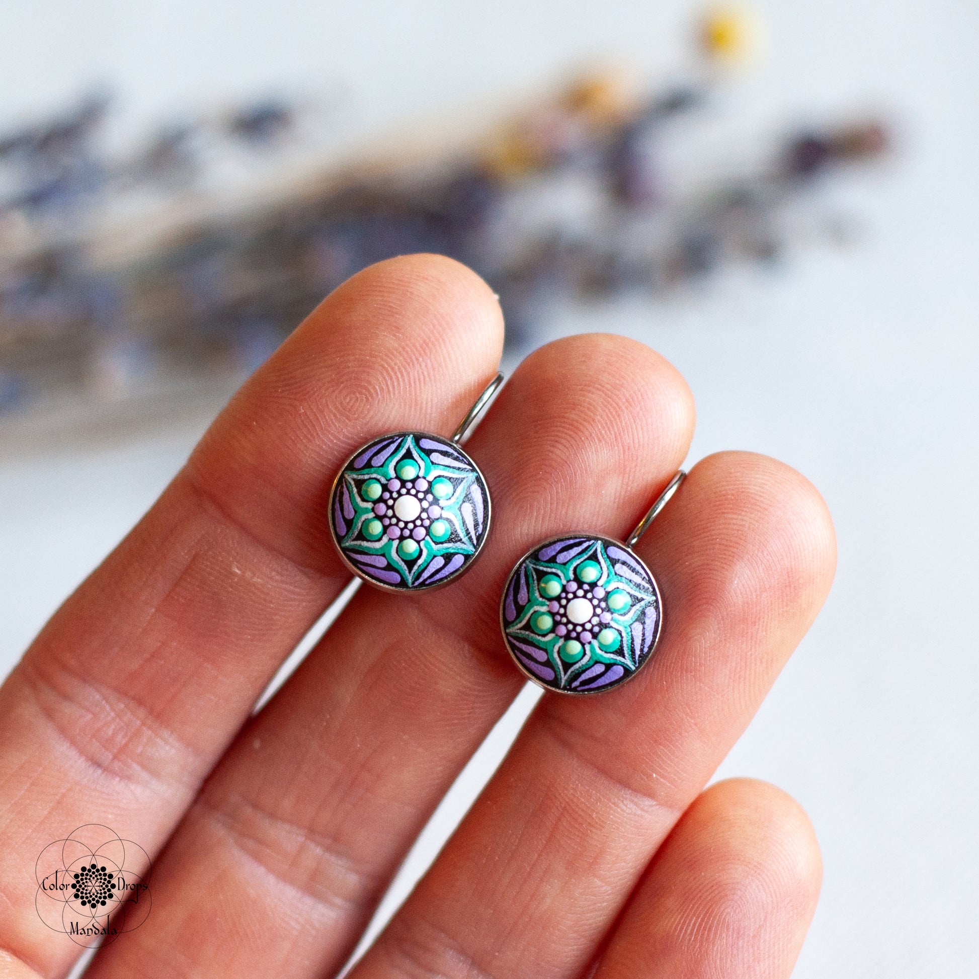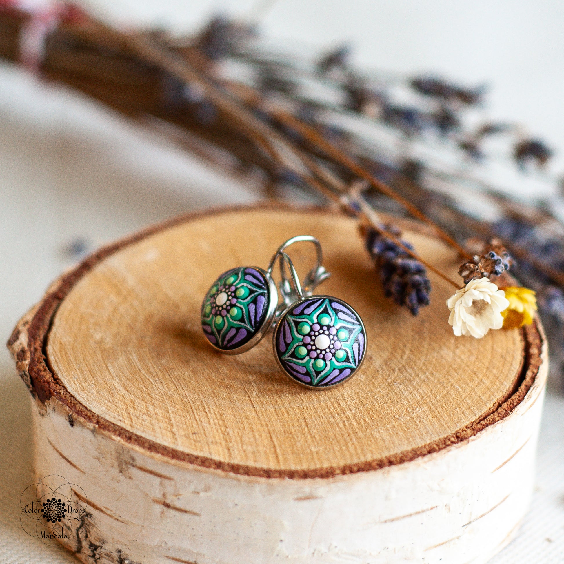 Pictați manual pe lemn, cerceii mandala sunt foarte ușori și confortabili. Culorile au fost atent alese pentru a obține un efect cromatic deosebit, ce te va ajuta să iți păstrezi pozitivitatea și energia pe parcursul întregii zile. Fiecare punct a fost pictat cu multă grijă și cu migală, ca tu să te simți unică și specială purtându-i.