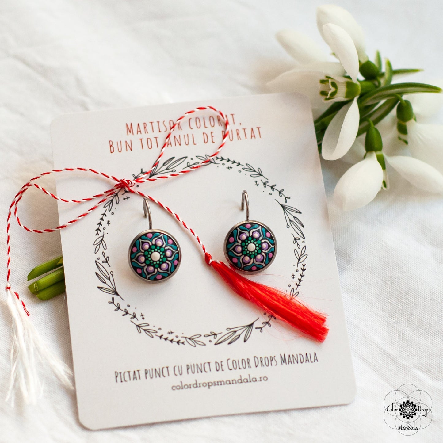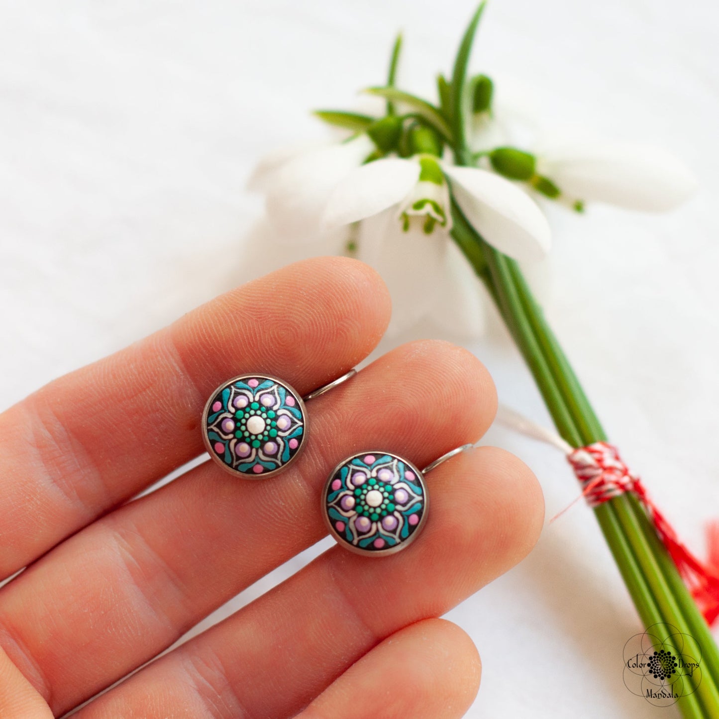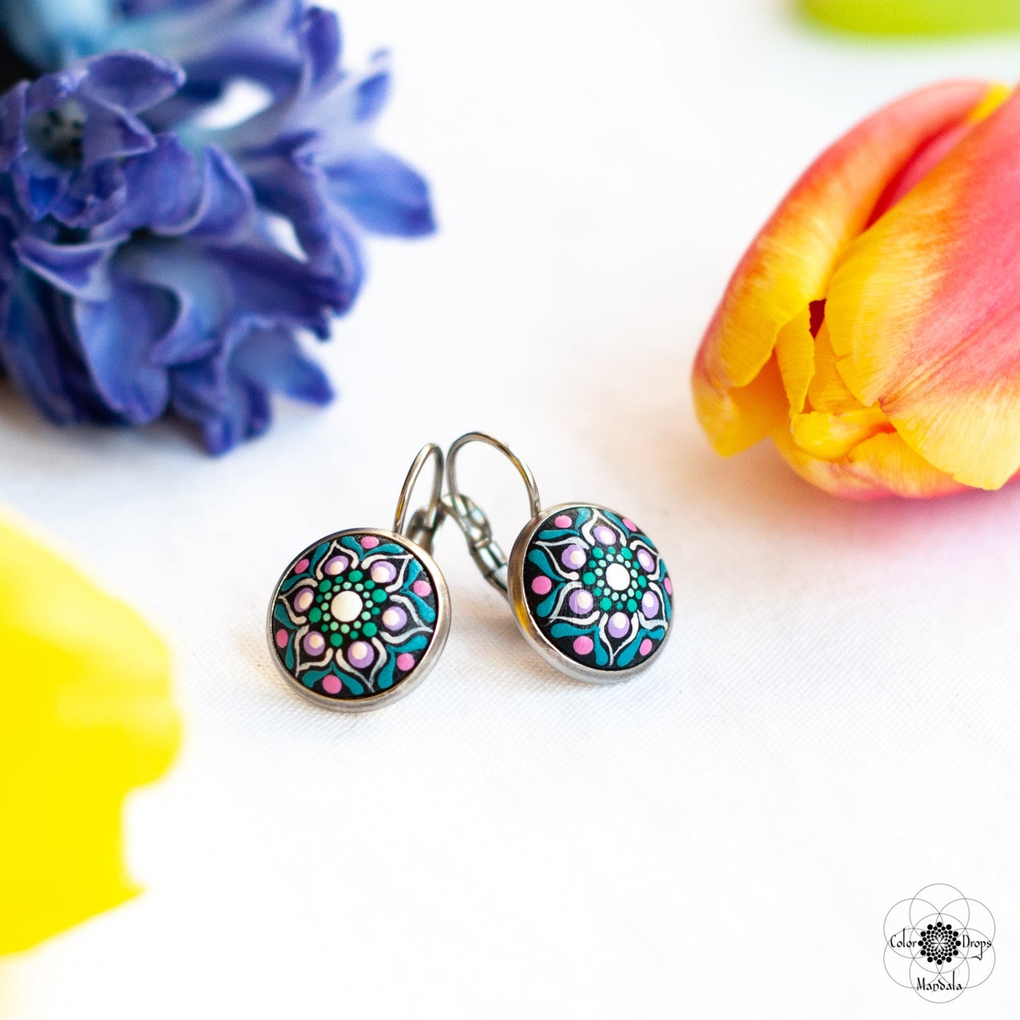 Pictați manual pe lemn, cerceii mandala sunt foarte ușori și confortabili. Culorile au fost atent alese pentru a obține un efect cromatic deosebit, ce te va ajuta să iți păstrezi pozitivitatea și energia pe parcursul întregii zile. Fiecare punct a fost pictat cu multă grijă și cu migală, ca tu să te simți unică și specială purtându-i.