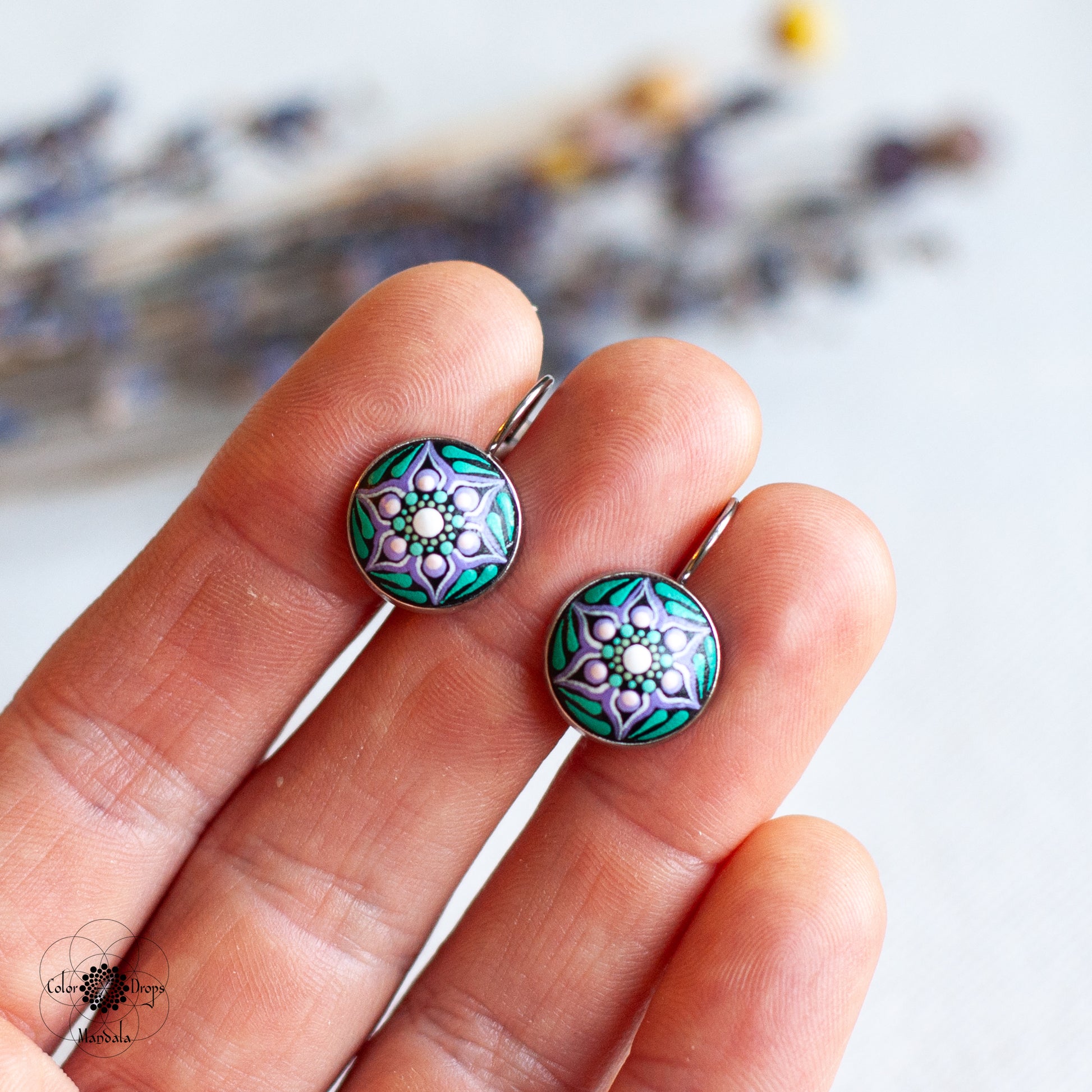 Pictați manual pe lemn, cerceii mandala sunt foarte ușori și confortabili. Culorile au fost atent alese pentru a obține un efect cromatic deosebit, ce te va ajuta să iți păstrezi pozitivitatea și energia pe parcursul întregii zile. Fiecare punct a fost pictat cu multă grijă și cu migală, ca tu să te simți unică și specială purtându-i.