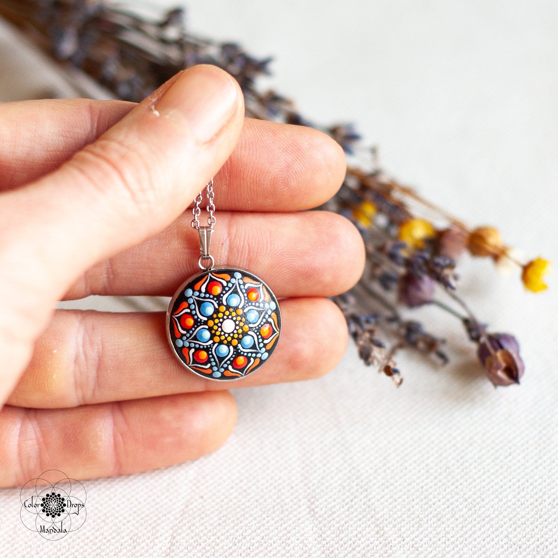 Am pictat colierul Mandala "Soothing sun" în culori calde și strălucitoare, în dorința de a îți aduce în suflet căldura soarelui și liniștea unei zile senine de primăvară. Mandala florală delicată, pictată manual pe lemn, te îndeamnă să te încrezi în puterea regeneratoare a sezonului, aducându-ți bucurie și optimism în fiecare clipă.