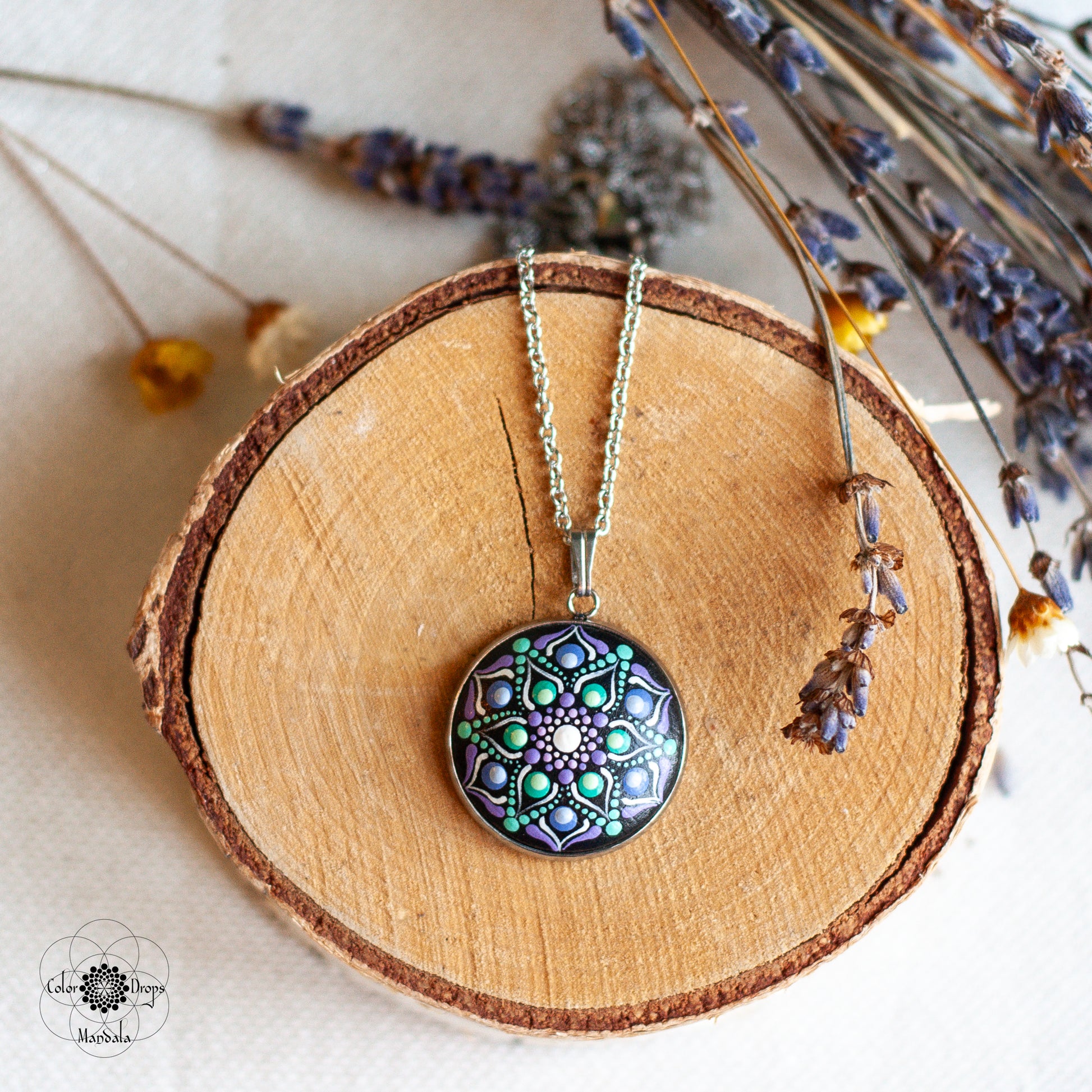 Pictat manual pe lemn, colierul este foarte ușor și confortabil, iar culorile au fost atent alese pentru a obține un efect cromatic deosebit, ce te încurajează să cultivi și să împărtășești generozitatea și iubirea în viața ta.. Fiecare punct a fost pictat cu multă grijă și cu migală, ca tu să te simți unică și specială purtându-i.