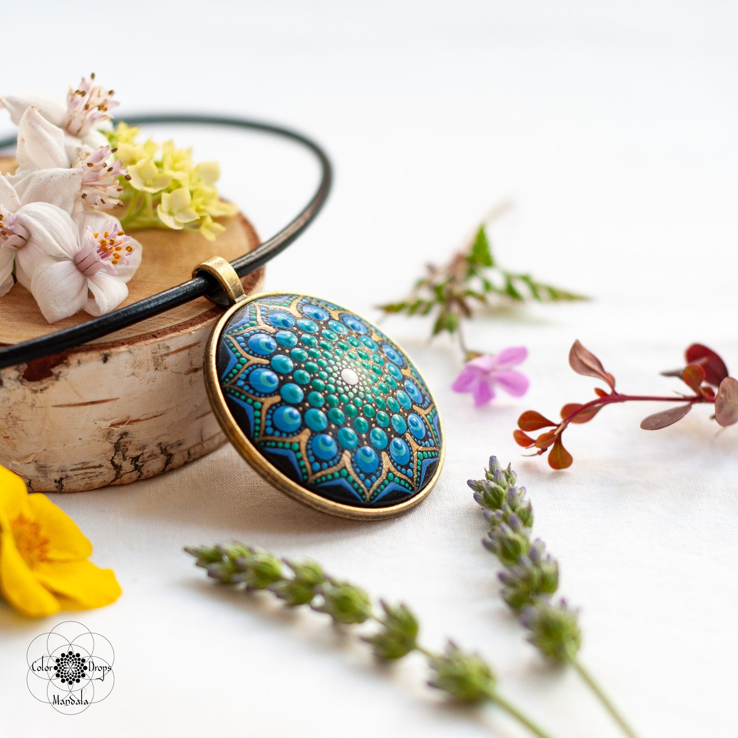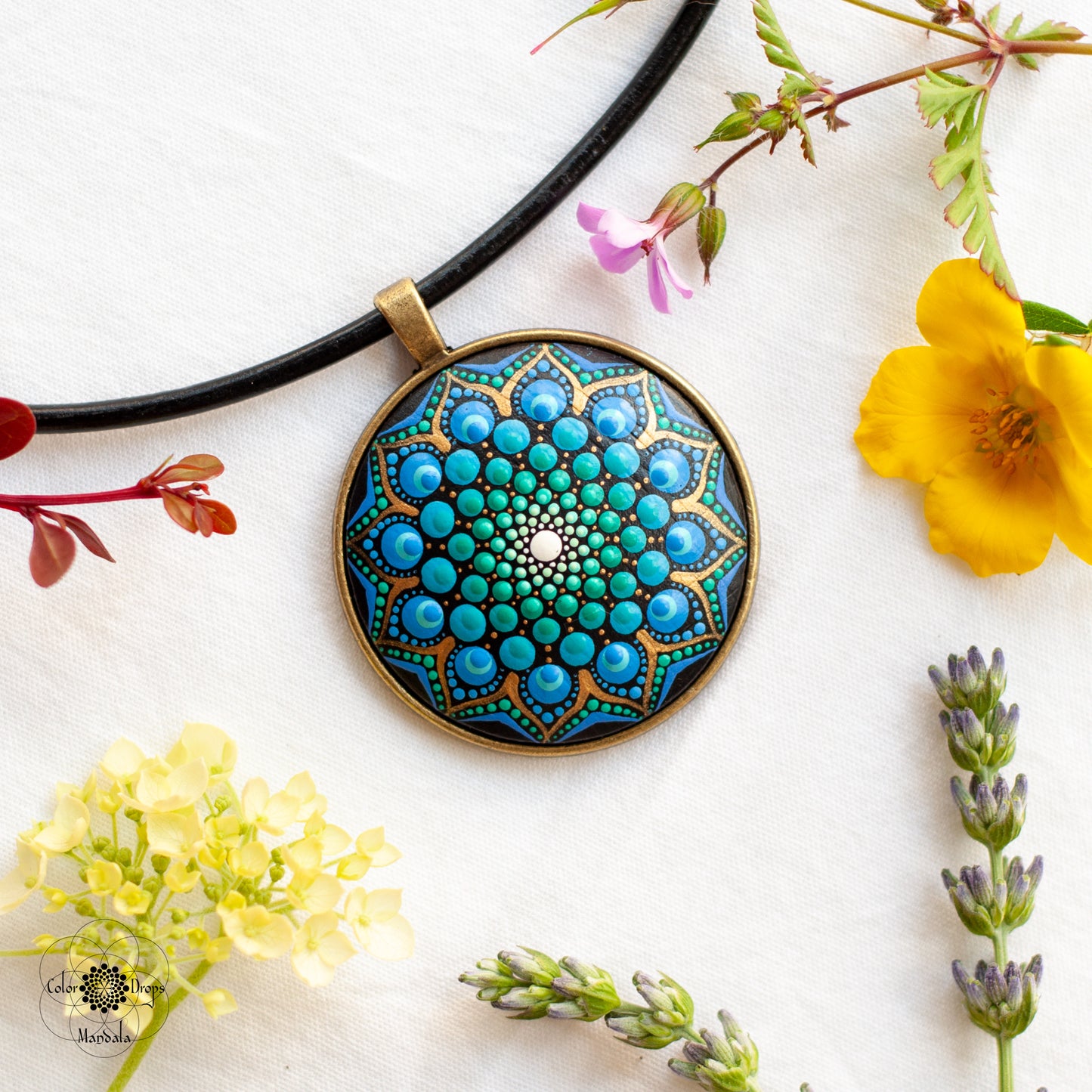 Colier Mandala "Vivid Nomad" - Albastru & Turcoaz
