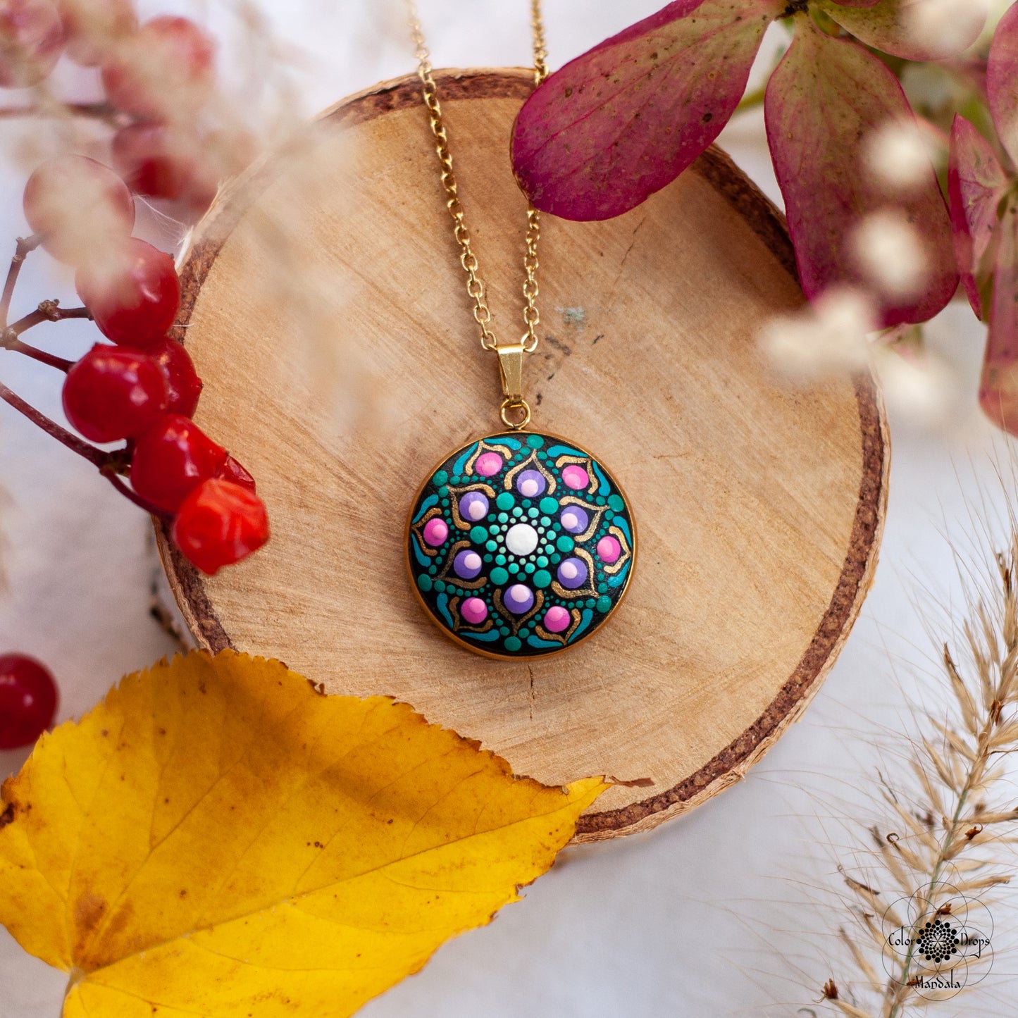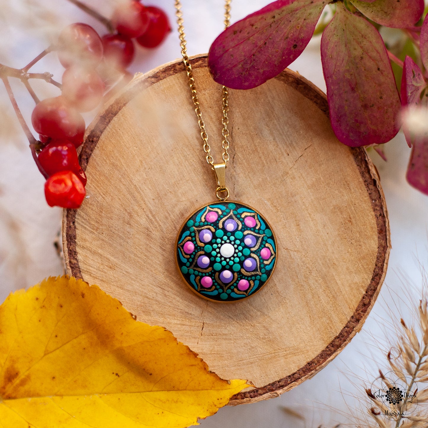 De o eleganță subtilă, colierul "Joyfull Fall" are puterea de a te încărca cu energia binefăcătoare a toamnei, ajutandu-te să îți atingi potențialul plină de încredere și cu înțelepciune. Prin modelul mandalei și prin notele discrete de auriu, te invit să îți descoperi puterea interioară și te încurajez să împărtășești această bogăție cu cei din jur!