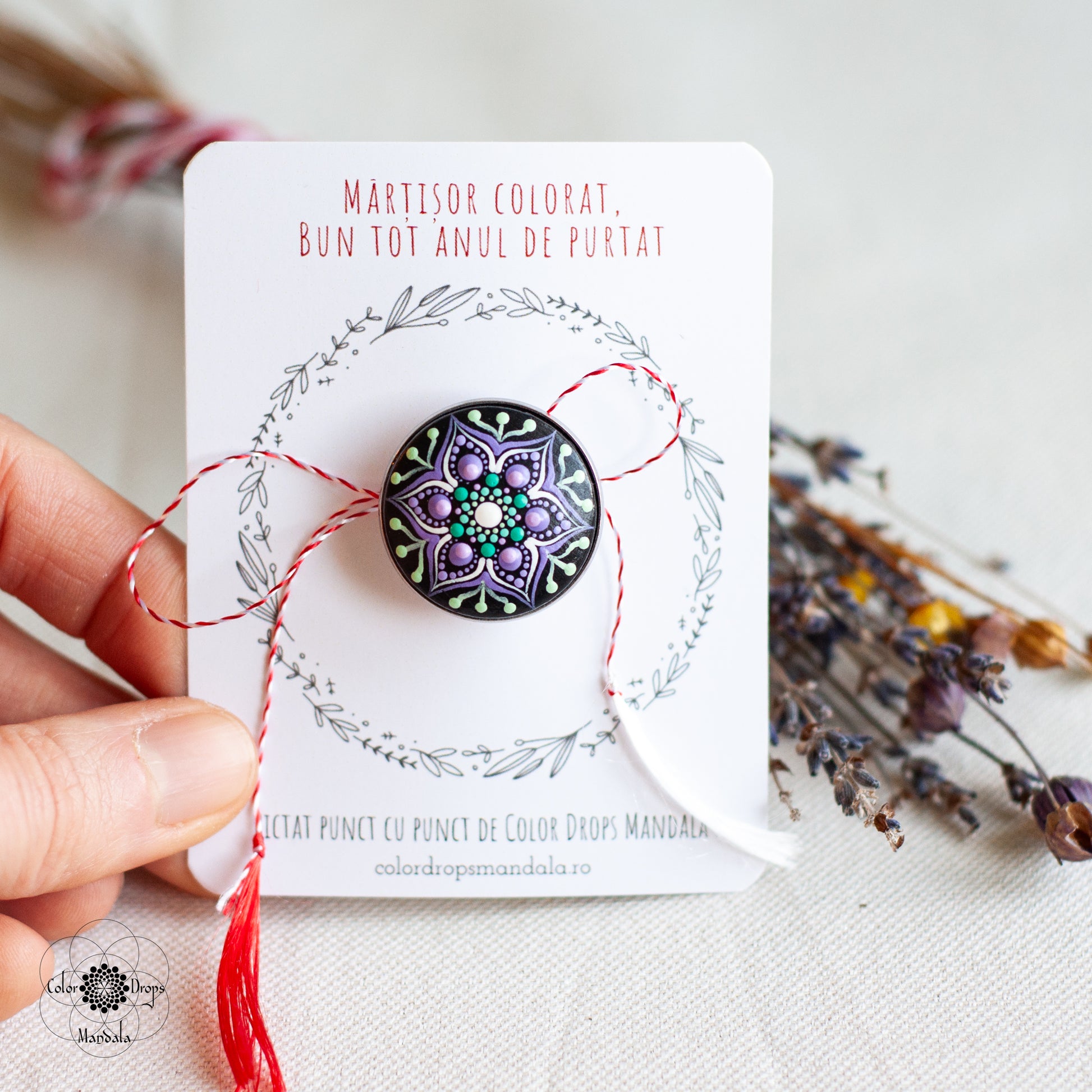 Mărțișor colorat, bun tot anul de purtat! Pictat manual pe lemn în culori vesele și vibrante, acest mărțișor mandala va aduce bucuria primăverii în sufletul oricui îl poartă.